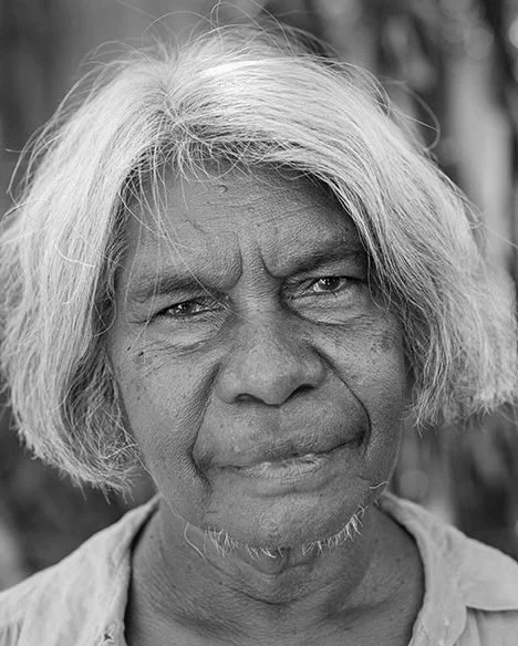 River Stones by April Jones is from our Fitzroy Crossing Collection and combines natural elements local to the Fitzroy River area. It depicts the leaves of a gumtree with big nuts found on the Kimberley coast, and the small, elongated shapes represent flat pointy stones.